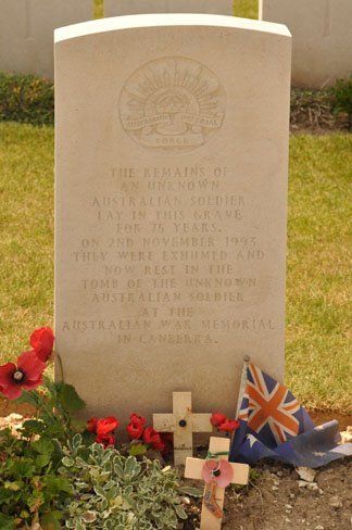 In the small garden behind the church is a stone replica (donated to ANZAC day 2008) of the wooden cross that was erected by the 51st Australian Battalion on the battlefield on April 24, 1918.